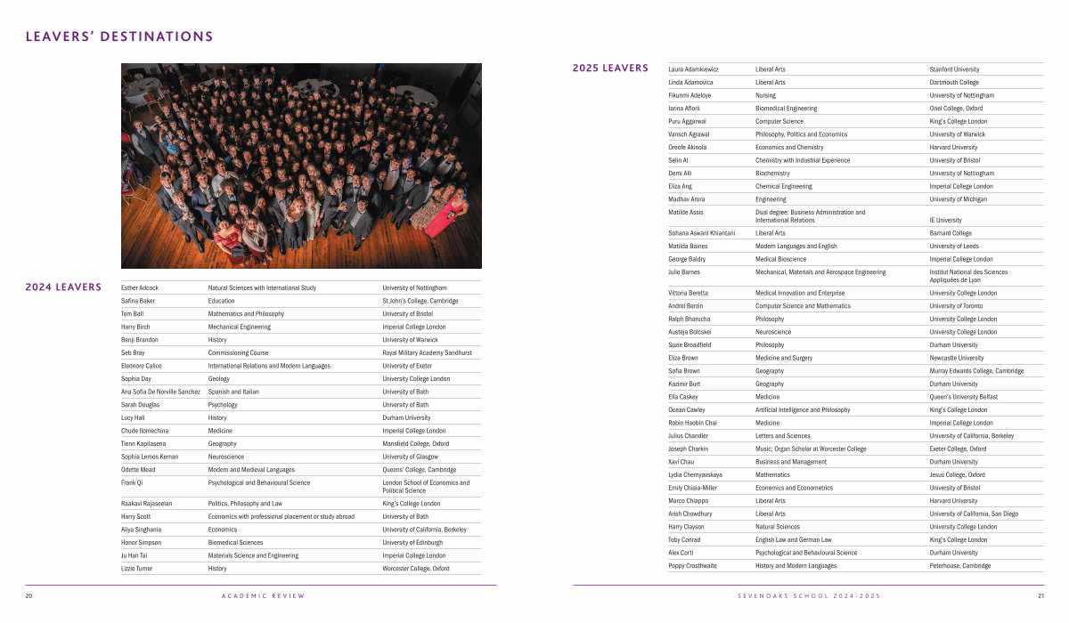 Esther Adcock Natural Sciences with International Study University of Nottingham Safina Baker Education St John’ s College, Cambridge Tom Ball Mathematics and Philosophy University of Bristol Harry Birch Mechanical Engineering Imperial College London Benji Brandon History University of Warwick Seb Bray Commissioning Course Royal Military Academy Sandhurst Eleonore Calice International Relations and Modern Languages University of Exeter Sophia Day Geology University College London Ana Sofia De Norville Sanchez Spanish and Italian University of Bath Sarah Douglas Psychology University of Bath Lucy Hall History Durham University Chude Ilomechina Medicine Imperial College London Tienn Kapilasena Geography Mansfield College, Oxford Sophia Lemos Kernan Neuroscience University of Glasgow Odette Mead Modern and Medieval Languages Queens’ College, Cambridge