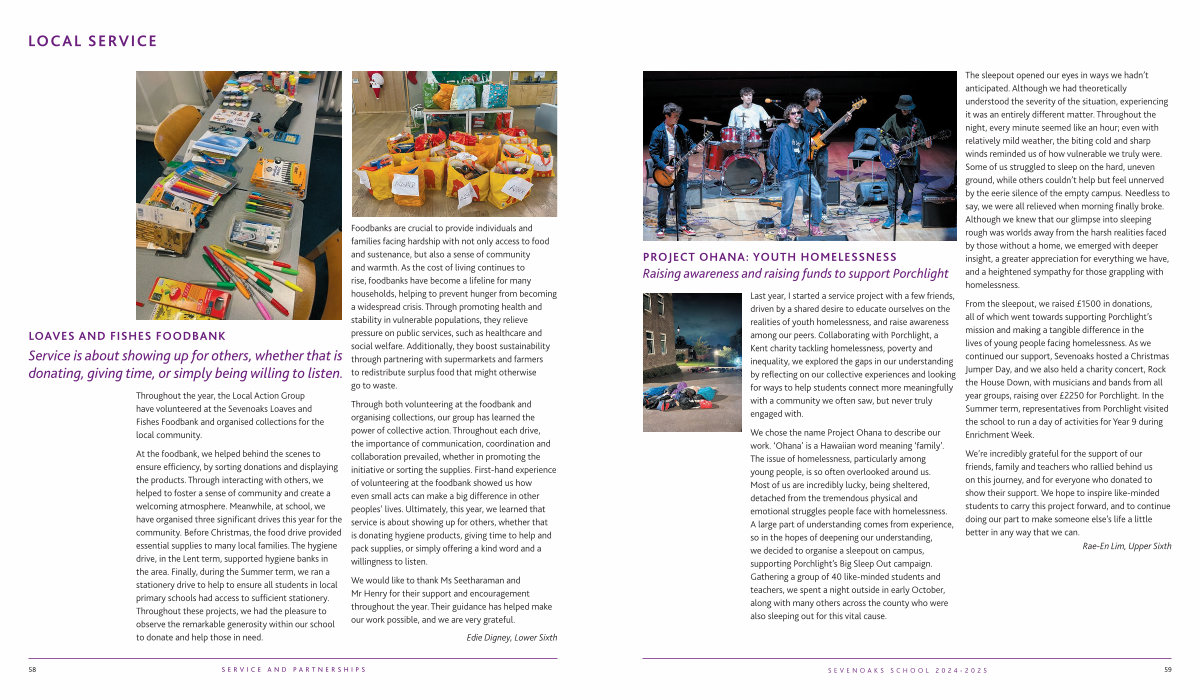 Last year, I started a service project with a few friends, driven by a shared desire to educate ourselves on the realities of youth homelessness, and raise awareness among our peers. Collaborating with Porchlight, a Kent charity tackling homelessness, poverty and inequality, we explored the gaps in our understanding by reflecting on our collective experiences and looking for ways to help students connect more meaningfully with a community we often saw, but never truly engaged with.