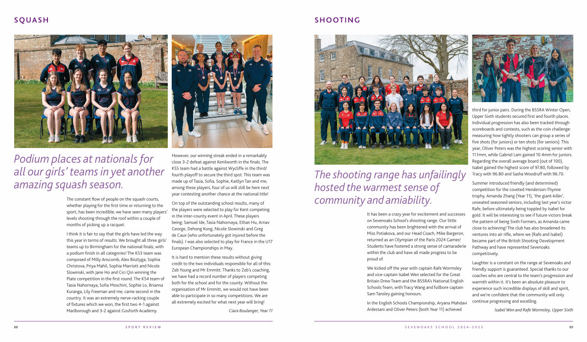 Summer introduced friendly( and determined) competition for the coveted Henderson-Thynne trophy. Amanda Zhang( Year 11),‘ the giant-killer’, unseated seasoned seniors, including last year’ s victor Rafe, before ultimately being toppled by Isabel for gold. It will be interesting to see if future victors break the pattern of being Sixth Formers, as Amanda came close to achieving! The club has also broadened its ventures into air rifle, where we( Rafe and Isabel) became part of the British Shooting Development Pathway and have represented Sevenoaks competitively.