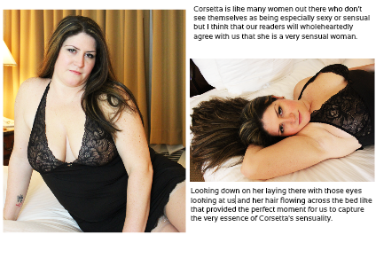 Corsetta is like many women out there who don't see themselves as being especially sexy or sensual but I think that our readers will wholeheartedly agree with us that she is a very sensual woman.