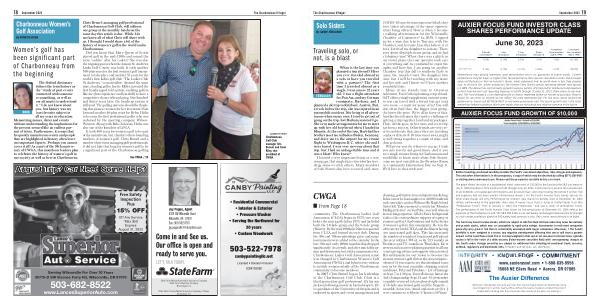 planning , golf instruction and sports marketing . In his career he has taught over 40,000 students and currently coaches Wilsonville High School Girls Golf . Take a moment to watch his “ Monday Mulligan Series ” on YouTube ; you will witness his teaching expertise . All of Chris ’ s background leads to his extraordinary support of equity in women ’ s golf in Charbonneau and in the future of women ’ s golf in this community . He was the advocate for both CWGA and the Niners having two sanctioned golf days . This has increased the number of rounds of sanctioned golf played this year within CWGA , so far 523 rounds on Tuesdays and 571 rounds on Thursdays . He is present and an active planning partner in all our events giving advise and support when needed . His enthusiasm for our vision to become the premier women ’ s golf club in the area is unprecedented . If you want to see this firsthand come join us for the next scramble , chipping contest and dinner , Fifty and Fabulous – Let ’ s Flamingo on Sept . 7 at 1:30 p . m . You will also see him at the club championship Sept . 14 and 15 ( remember to qualify you need to have played eight rounds of 18-hole sanctioned golf ) and the Stagette — scramble , horse race , lunch and more on Oct . 3 as we continue to celebrate “ Cheers to 50 Years .”