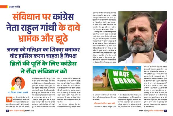 आम जनता को भ्धमत करनरे का काम निर्लज्जता के साथि एक बार फिर किया जा रहा है । कांग्रेस नरेता राहुल गांधी का कहना है कि भाजपा एक दिन संविधान को खतम करनरे के लिए काम कर रही हैं और संविधान जिस दिन खतम हो जाएगा, इस दरेश में गरीबों, दलितों, आदिवासियों और ओबीसी के लिए कुछ नहीं बचरेगा । यहां पर गंभीर प्रश्न यह है कि ्या वासत् में ऐसा है?