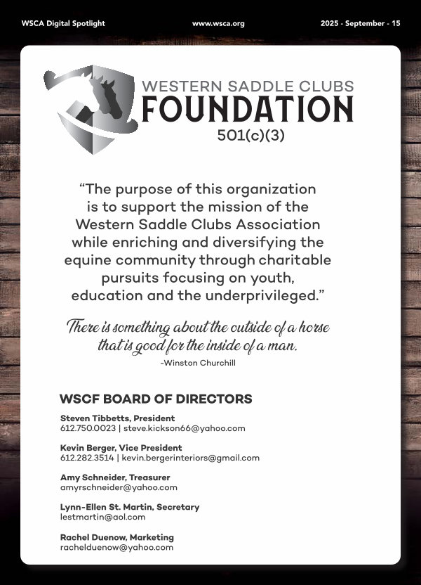 “ The purpose of this organization is to support the mission of the Western Saddle Clubs Association while enriching and diversifying the equine community through charitable pursuits focusing on youth, education and the underprivileged.”