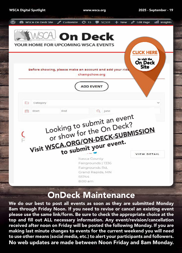 Visit WSCA. ORG / ON-DECK-SUBMISSION to submit your event.