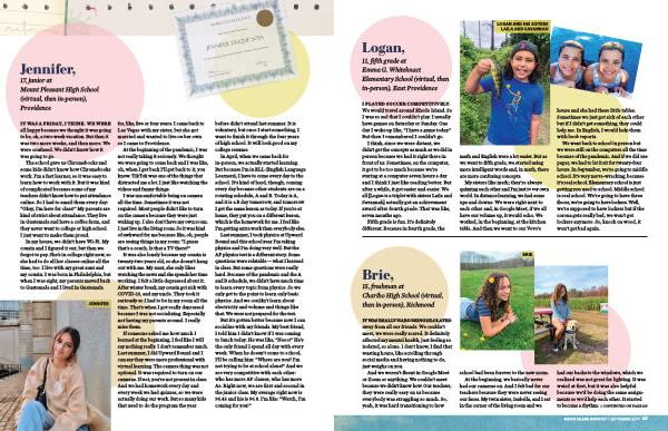 We went back to school in person but we were still on the computers all the time because of the pandemic . And if we did use paper , we had to let it sit for twenty-four hours . In September , we ’ re going to middle school . It ’ s very nerve-wracking , because it ’ s real school . Elementary school is just getting you used to school . Middle school is real school . We ’ re going to have three floors , we ’ re going to have lockers . Well , we ’ re supposed to have lockers but if the corona gets really bad , we won ’ t get lockers anymore . So , knock on wood , it won ’ t get bad again .