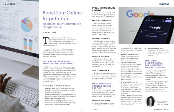 Streamlining online reviews and maximizing your Google Business Profile are essential strategies for multifamily properties to enhance their online presence and attract more residents .