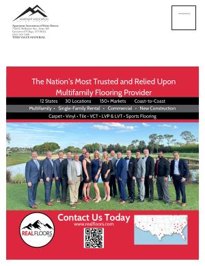 The Nation ’ s Most Trusted and Relied Upon Multifamily Flooring Provider 12 States 30 Locations 150 + Markets Coast-to-Coast Multifamily • Single-Family Rental • Commercial • New Construction Carpet • Vinyl • Tile • VCT • LVP & LVT • Sports Flooring