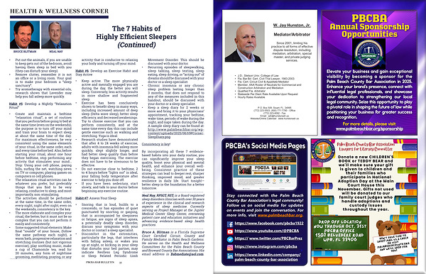 Bruce A. Blitman is a Florida Supreme Court Certified Circuit, County and Family Mediator in Palm Beach Gardens. He serves on the Health and Wellness Committees for the Palm Beach County and Broward County Bar Associations. His email address is Babmediate @ aol. com.
