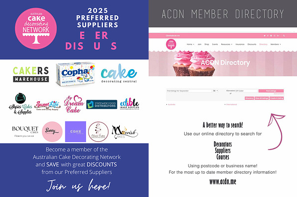 Become a member of the Australian Cake Decorating Network and SAVE with great DISCOUNTS from our Preferred Suppliers