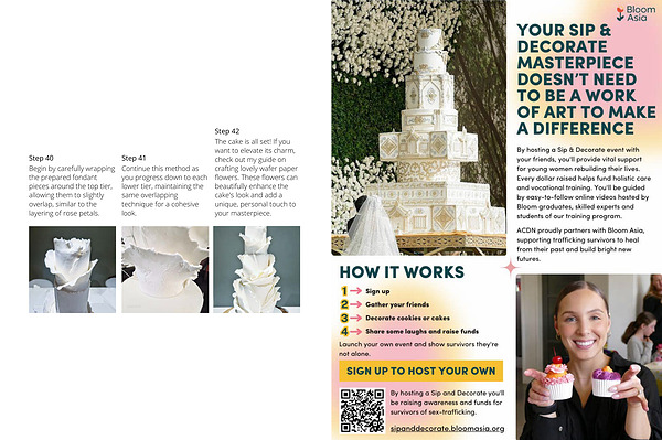 Step 40 Step 41 Begin by carefully wrapping the prepared fondant pieces around the top tier, allowing them to slightly overlap, similar to the layering of rose petals.