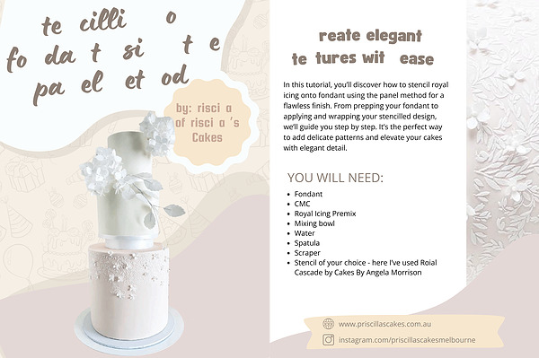 Stencilling on fondant using the panel method by: Priscilla of Priscilla’ s Cakes