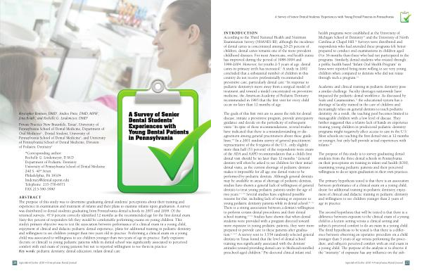 A Survey of Senior Dental Students ’ Experiences with Young Dental Patients in Pennsylvania