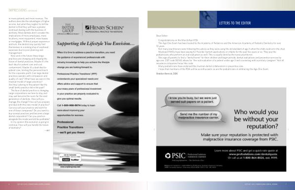 Congratulations on the March / April PDJ . The Age One Exam has been touted by the Academy of Pediatrics and the American Academy of Pediatric Dentistry for over