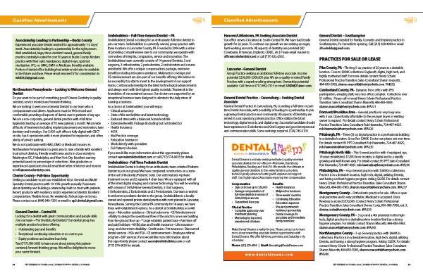 Dental Dreams is actively seeking motivated , quality-oriented associate dentists for our offices in Allentown , Harrisburg , Philadelphia , Reading and York , PA . We provide the ultimate in quality general dentistry to the entire family in a modern , technologically advanced setting with experienced support staff . Our highly valued Associates enjoy top tier compensation .