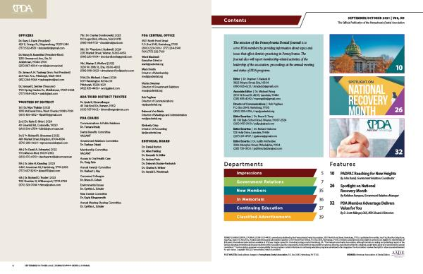 2 SEPTEMBER / OCTOBER 2021 | PENNSYLVANIA DENTAL JOURNAL