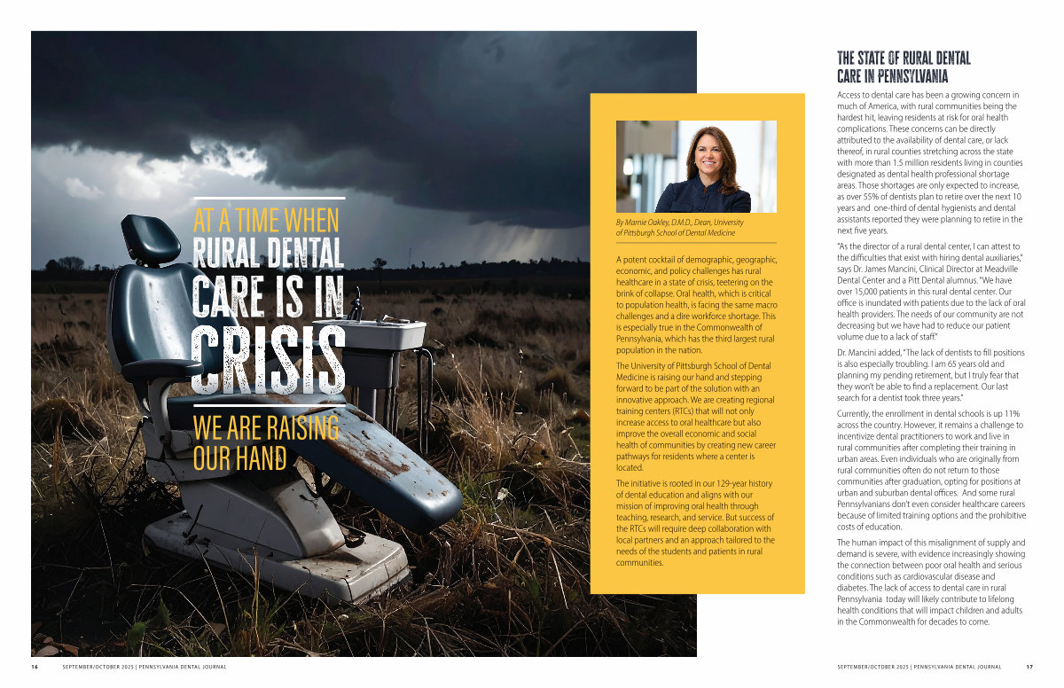 A potent cocktail of demographic, geographic, economic, and policy challenges has rural healthcare in a state of crisis, teetering on the brink of collapse. Oral health, which is critical to population health, is facing the same macro challenges and a dire workforce shortage. This is especially true in the Commonwealth of Pennsylvania, which has the third largest rural population in the nation.
