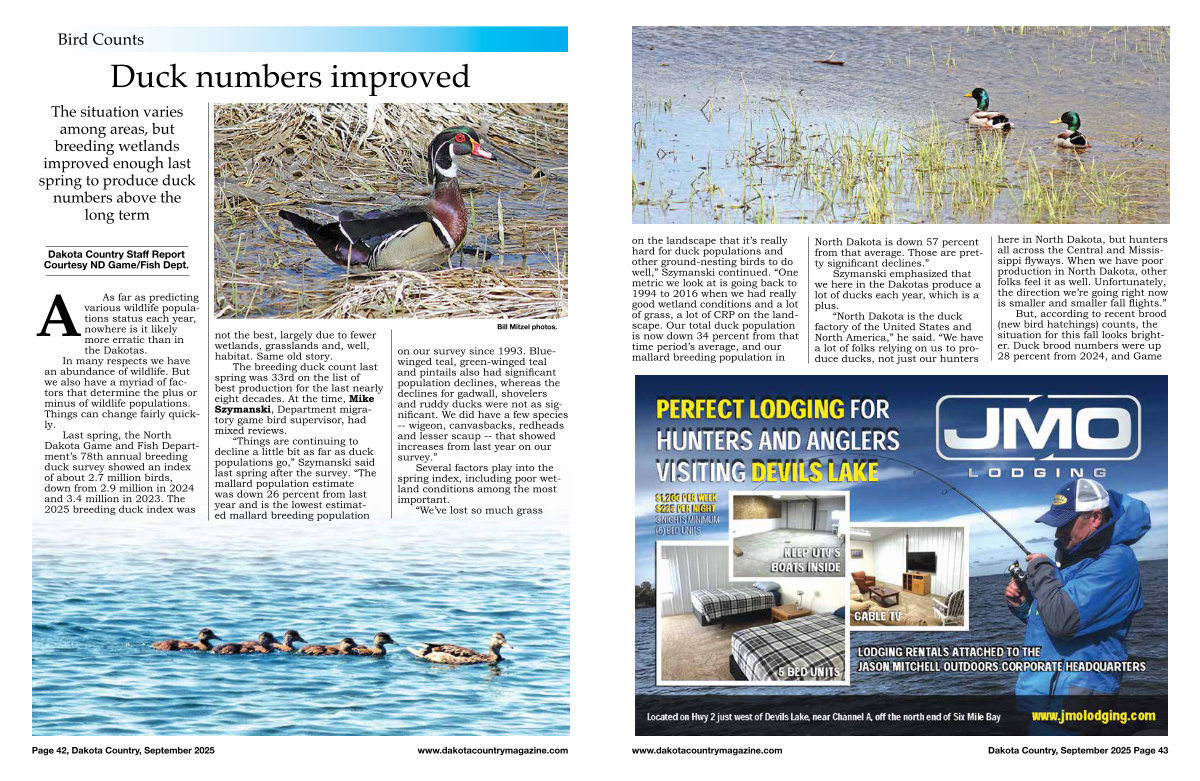 But, according to recent brood( new bird hatchings) counts, the situation for this fall looks brighter. Duck brood numbers were up 28 percent from 2024, and Game
