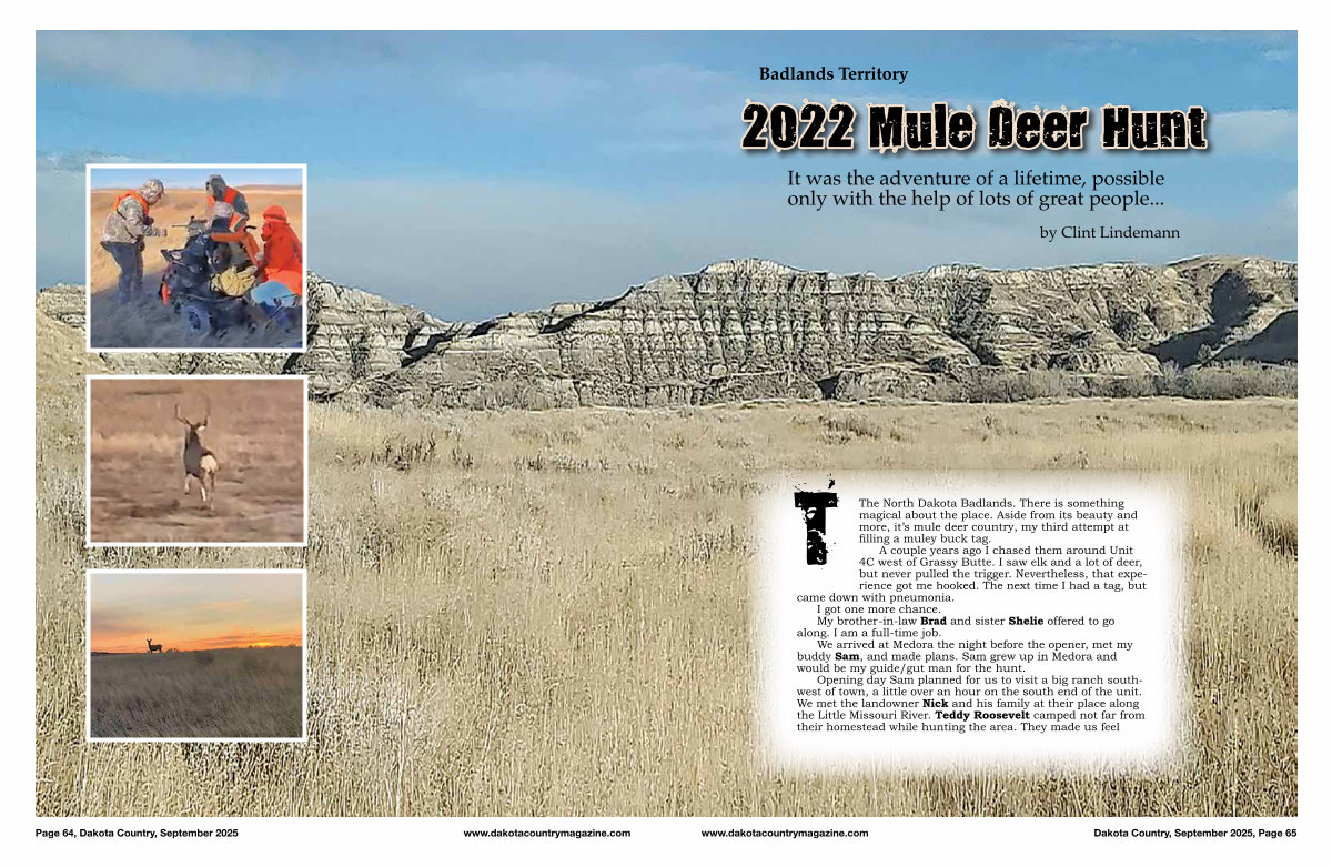 The North Dakota Badlands. There is something magical about the place. Aside from its beauty and more, it’ s mule deer country, my third attempt at filling a muley buck tag.
