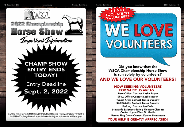 ★Online entries will include Stalling , Electrical , Champ Show & Futurity Entries and Payment . ★ The 2022 WSCA Champ Show will accept Online Entries Only - no mail in entries will be accepted .