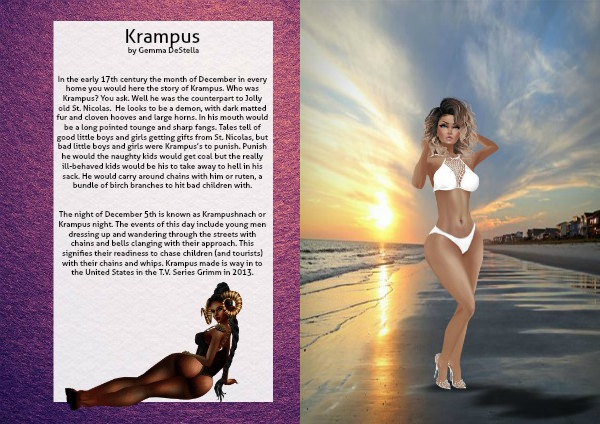 In the early 17th century the month of December in every home you would here the story of Krampus. Who was Krampus? You ask. Well he was the counterpart to Jolly old St. Nicolas. He looks to be a demon, with dark matted fur and cloven hooves and large horns. In his mouth would be a long pointed tounge and sharp fangs. Tales tell of good little boys and girls getting gifts from St. Nicolas, but bad little boys and girls were Krampus’s to punish. Punish he would the naughty kids would get coal but the really ill-behaved kids would be his to take away to hell in his sack. He would carry around chains with him or ruten, a bundle of birch branches to hit bad children with.