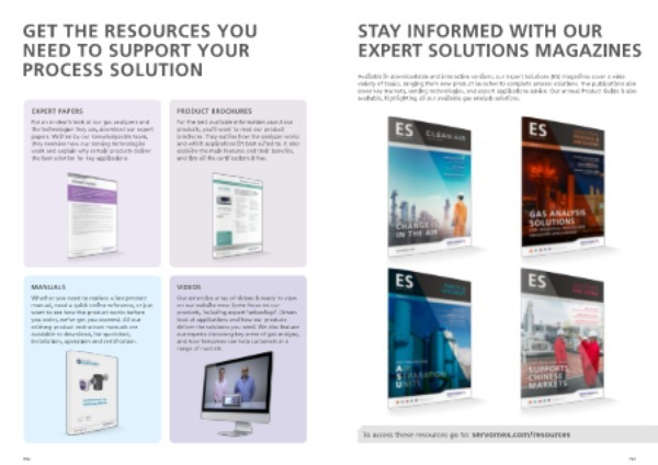 Available in downloadable and interactive versions , our Expert Solutions ( ES ) magazines cover a wide variety of topics , ranging from new product launches to complete process solutions . The publications also cover key markets , sensing technologies , and expert applications advice . Our annual Product Guide is also available , highlighting all our available gas analysis solutions .