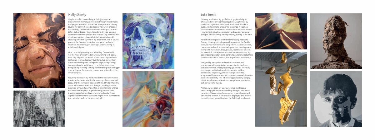 Growing up close to my godfather , a graphic designer , I often wandered through his art galleries , captivated by the hidden layers within his work . Each piece felt like a puzzle , inviting me to uncover its meanings . It was here I realised my fascination with art that transcends the obvious – inviting individual interpretation and sparking personal dialogue . This discovery has inspired my journey as an artist .