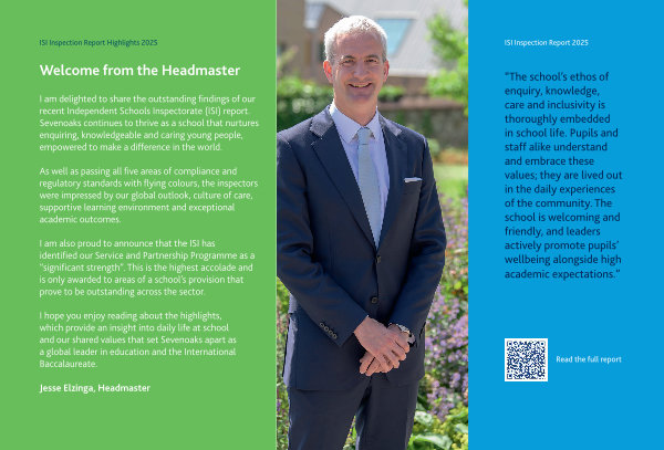 I am delighted to share the outstanding findings of our recent Independent Schools Inspectorate( ISI) report. Sevenoaks continues to thrive as a school that nurtures enquiring, knowledgeable and caring young people, empowered to make a difference in the world.