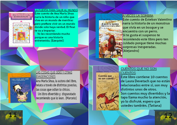 Yo les recomiendo mucho porque es una historia entretenida. (Ezequiel)