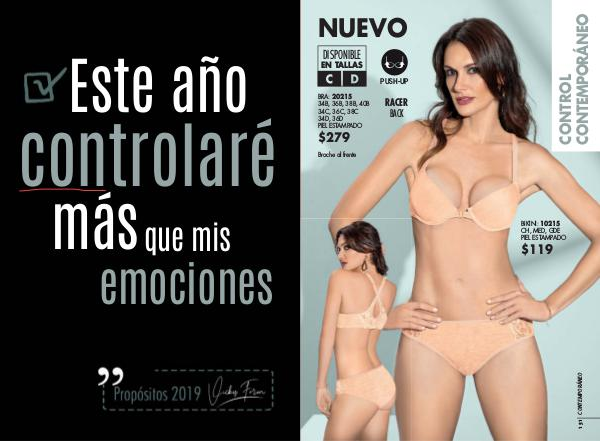 NUEVO DISPONIBLE EN TALLAS PUSH-UP BRA: 20215 34B, 36B, 38B, 40B 34C, 36C, 38C 34D, 36D PIEL ESTAMPADO RACER BACK $279 Broche al frente BIKINI: 10215 CH, MED, GDE PIEL ESTAMPADO $119