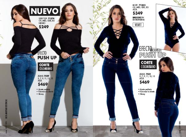 NUEVO SEXY TOP: 71374 CH, MED, GDE, EG NEGRO $249 EFECTO PUSH UP CORTE COLOMBIANO JEANS: 7529 5, 7, 9, 11, 13, 15 AZUL $469 • Ajuste perfecto • Favorece la silueta • Skinny