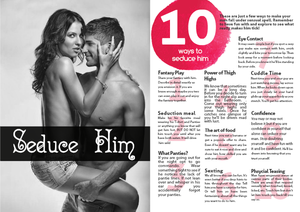 These are just a few ways to make your man fall under sensual spell. Remember to have fun with and explore to see what really makes him tick!