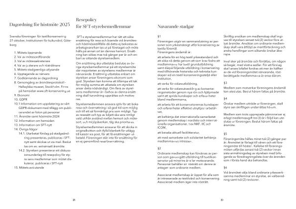 Föreningen utgör en sammanslutning av personer som yrkesmässigt utför konservering av textila föremål . Föreningens ändamål är :