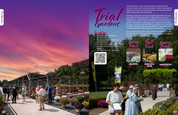 Starting in July and running through September you can view almost 1,000 large pots of vegetative annuals on display in our nearly 4 acre trial area . Or you can visit us in late September to view our mum and aster trial which features several hundred different varieties from multiple breeders . We end each year by offering a poinsettia trial in early December that is always well recieved .