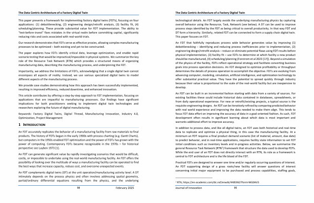 Keywords : Factory Digital Twins , Digital Thread , Manufacturing Innovation , Industry 4.0 , Optimization , Project Management
