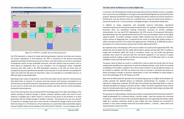 The RTN represents a network of nodes alternating between materials and tasks and connects the process ingredients to final products . The RTN is connected to the physical processing equipment and other limited resources such as labor . Each task may be run on one or more pieces of equipment and / or occupy renewable resources , and each material may be stored in one or more pieces of equipment . Thus , we can associate a list of equipment and / or renewable resources with each node in the RTN . Renewable resources in the RTN are those that are occupied during some specified time periods in the execution of a task and then are available for other uses when the task does not need them . Labor is an example of a renewable resource , or different pools of specialized labor .