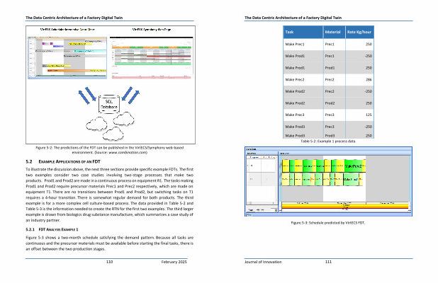 To illustrate the discussion above , the next three sections provide specific example FDTs . The first two examples consider two case studies involving two-stage processes that make two products . Prod1 and Prod2 are made in a continuous process on equipment R1 . The tasks making Prod1 and Prod2 require precursor materials Prec1 and Prec2 respectively , which are made on equipment T1 . There are no transitions between Prod1 and Prod2 , but switching tasks on T1 requires a 4-hour transition . There is somewhat regular demand for both products . The third example is for a more complex cell culture-based process . The data provided in Table 5-2 and Table 5-3 is the information needed to create the RTN for the first two examples . The third larger example is drawn from biologics drug substance manufacture , which summarizes a case study of an industry partner .