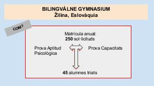 BILINGVÁLNE GYMNASIUM Žilina, Eslovàquia M? O C Matrícula anual: 250 sol·licituds Prova Aptitud Psicològica Prova Capacitats 45 alumnes triats