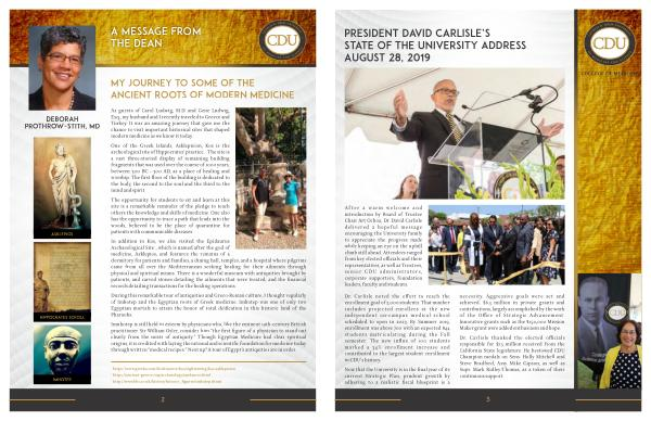 A f te r a w a r m welc o m e a n d introduction by Board of Trustee Chair Art Ochoa, Dr. David Carlisle delivered a hopeful message encouraging the University family to appreciate the progress made while keeping an eye on the uphill climb still ahead. Attendees ranged from key elected officials and their representatives, as well as Trustees, senior CDU administrators, corporate supporters, foundation leaders, faculty and students.