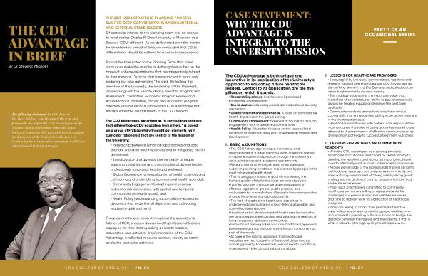 • Encouraged by University administrators, teaching and research faculty have embraced the CDU Advantage as the defining element in a 21st Century medical education rubric fundamental to student training.