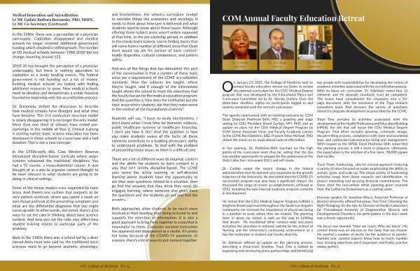 On January 23, 2021, the College of Medicine held its annual faculty education retreat via Zoom to review the planned curriculum for the CDU Medical Degree program that was developed by the Educational Policy and Curriculum Committee led by Dr. Glenda Lindsey. Over the three-hour duration, eighty-six participants logged in and seventy remained until the retreat’ s conclusion.