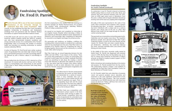 In the middle of the party, uncertain reality reared its fateful head. Dr. Parrott was diagnosed with prostate cancer in 1994. By that time, his Foundation was on its way to raising many hundreds of thousands of dollars primarily on behalf of medical student support at CDU and the other HBCUs.