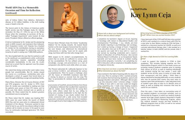 Over the years, I have taken on overseeing some of our medical students’ co-curricular activities, such as Partnership for Progress, in which our medical students mentor local high school students interested in health careers; the Pre-Medical Mentoring Program, where the medical students mentor pre-med students in different programs here at CDU, as well as our annual Project Santa Claus event.