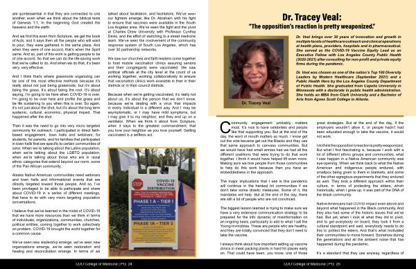 Dr. Veal was chosen as one of the nation’ s Top 100 Diversity Leaders by Modern Healthcare( September 2021) and a Public Health Hero by the Los Angeles County Department of Public Health. She graduated from Capella University in Minnesota with a doctorate in public health administration. She holds an MBA from Clark University and a Bachelor of Arts from Agnes Scott College in Atlanta.