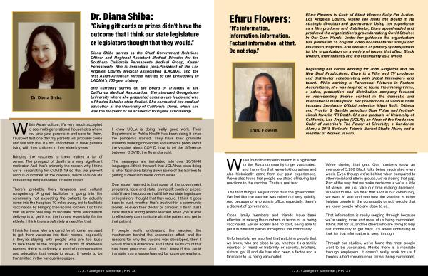 I know UCLA is doing really good work. Their Department of Public Health has been doing it since the pandemic started. They have their graduate students working on various social media posts about the vaccine about COVID, how to tell the difference between COVID, the flu and a cold.