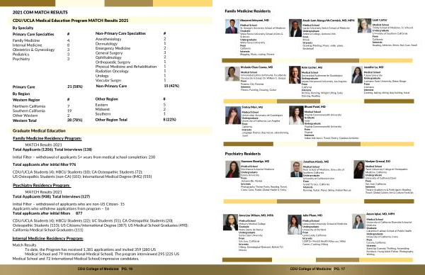 2021 COM MATCH RESULTS CDU / UCLA Medical Education Program MATCH Results 2021 By Specialty Primary Care Specialties #