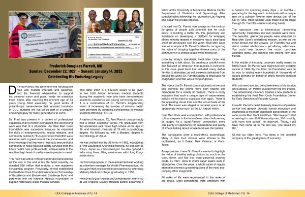 It is said that Dr. Parrott was always on the lookout for gems of people with potential that he could assist in building a better life. His generosity and insistence on developing a platform for emerging ethnic minority leaders in medicine had a solid base which he developed over the years. Real Men Cook was an example of Dr. Parrott’ s talent for recognizing the value of bringing together diverse parts of the community in a unified cause while having fun.