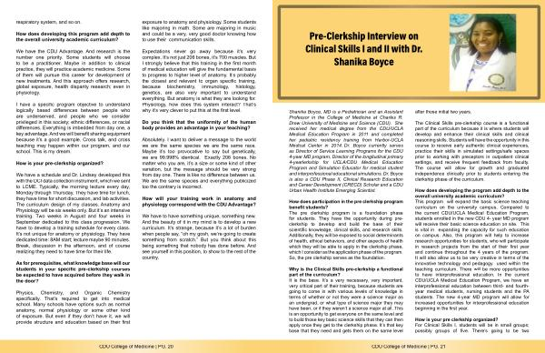 As for prerequisites, what knowledge base will our students in your specific pre-clerkship courses be expected to have acquired before they walk in the door? exposure to anatomy and physiology. Some students like majoring in math. Some are majoring in music and could be a very, very good doctor knowing how to use their communication skills.