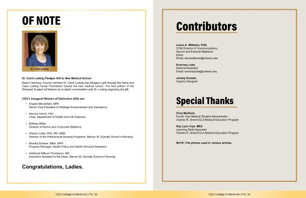 Dean’ s Advisory Council member Dr. Carol Ludwig has pledged a gift through the Gene and Carol Ludwig Family Foundation toward the new medical school. The next edition of the Sharpest Scalpel will feature an in-depth conversation with Dr. Ludwig regarding the gift.