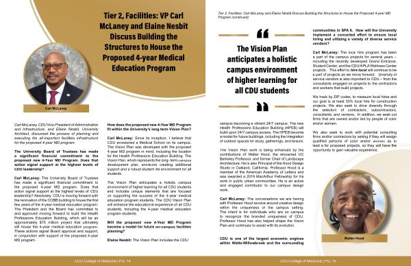 Carl McLaney: The local hire program has been a part of the campus projects for several years – including the recently developed Grand Entrance, Student Center, and the CDU / APLA Wellness Center projects. This effort to hire local will continue to be a part of projects as we move forward. Diversity of service vendors is also important to CDU – from the consultants engaged on projects to the contractors and workers that build projects.