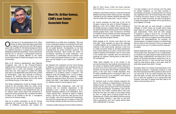 On the face of it, the appointment of Dr. Arthur Gomez as Senior Associate Dean responsible for helping to lead the new CDU MD program seems like a perfect fit. His family background alone is a textbook example of a people who encountered debilitating healthcare disparities. Those experiences spurred him to become a distinguished physician and champion of people affected by the varied social determinants of health that plague most urban communities.